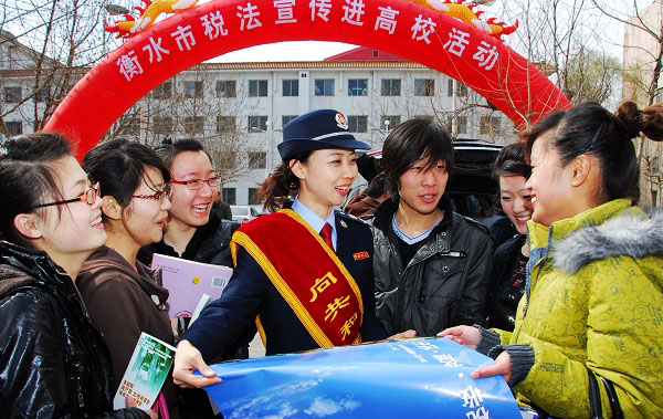 2010年4月1日上午,全國第19個稅收宣傳月到來之際,衡水市國、地稅局聯(lián)合來到衡水學(xué)院,拉開了稅收宣傳月暨稅收宣傳走進(jìn)高;顒拥男蚰弧